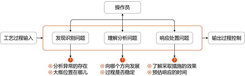 數字硫酸DCS系統是把硫酸裝置運行數據進行信息化,呈現在操作員面前的是硫酸裝置運行信息,而非運行數據,不在像傳統DCS系統那樣操作員還需要對運行數據進行信息化處理。并且準確、快速把硫酸裝置出現的信息呈現在操作員面前,并指導操作員對信息進行處理。所以數字硫酸DCS系統是根據操作人員思考過程進行設計的,操作人員在操作過程思考方式是發現問題、理解問題、處理問題。在設計遵循了操作人員對工藝和設備的思考邏輯原則,實現在操作時快速、準確、不用太多思考。操作員思考過程見圖2。為了減少操作員思考,數字硫酸DCS系統融入了解決人類短時記憶限制技術。利用感官記憶技術使操作員通過直覺的勢態感知技術,無需記憶就能有效分辨裝置運行信息,準確對裝置進行人工干預。提高裝置運行效率和安全性。