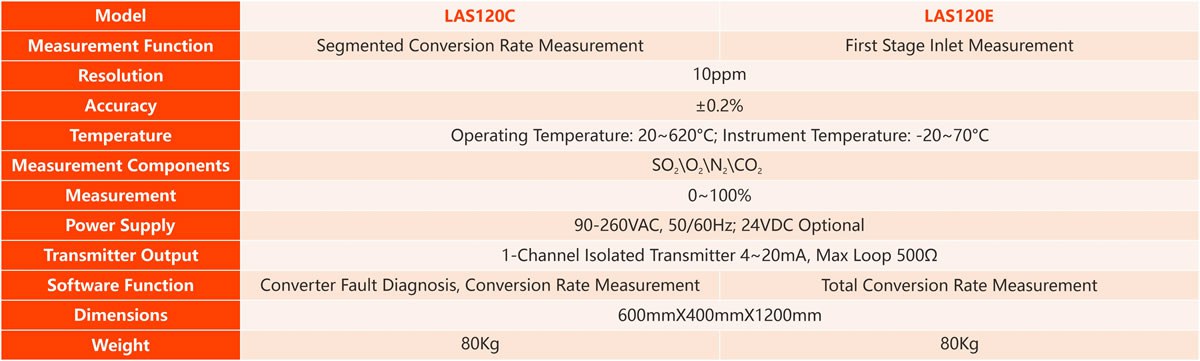 LAS120 online conversion health diagnosis system is composed of micro gas chromatograph, flue gas purification and pretreatment device, conversion health diagnosis software, which is a special health diagnosis system for sulfuric acid plant converter. It is suitable for the measurement of fractional conversion rate and leakage of heat exchangers for sulfuric acid production, smelting flue gas acid production, pyrite acid production, acid gas system acid and waste acid cracking acid production. The LAS120 has the advantages of fast measurement, accurate results and environmental friendliness.