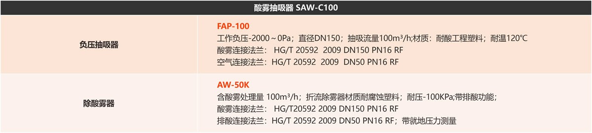 鑒于泵槽與泵架之間存在間隙,必須維持泵槽內部微小的負壓狀態,以防止廢氣泄漏至大氣。目前,硫酸裝置配備的尾氣脫硫塔,其風機葉輪和軸承采用316L不銹鋼材質,而風機殼則采用塑料材質。然而,改造后我們發現,泵槽內的酸性氣體中水分和酸霧會形成稀酸,對風機葉輪造成嚴重的蝕,導致葉輪無法保持動平衡。此外,風機內部凝結的冷凝酸增加了風機的震動,風機殼與進口背蓋連接處的密封經常發生稀酸和少量廢氣泄漏,連接螺栓頻繁遭受腐蝕;軸與風機殼密封境料處同樣經常出現稀酸和廢氣泄漏,軸與廢氣接觸部位的腐蝕尤為嚴重,通常需要每月更換一次葉輪和連接螺栓。每次更換下來的葉輪必須用清水徹底沖洗,并重新進行動平衡校準,以備下次使用。在風機運行期間,還需定期排出風機殼內的稀酸。這些技術改進不僅操作不便,檢修頻緊,維護成本高昂,而且在檢修過程中容易導致廢氣泄漏到大氣中,風機內的冷凝酸也使得檢修環境變得惡劣。因此,如何有效回收循環槽中的酸性氣體已成為行業面臨的難題。我司研發的SAW-C100酸抽吸器正是為解決這一問題而設計的設備。
